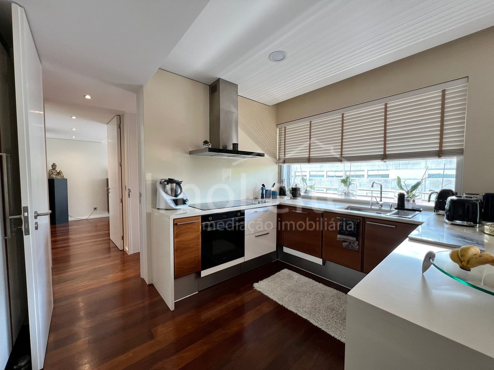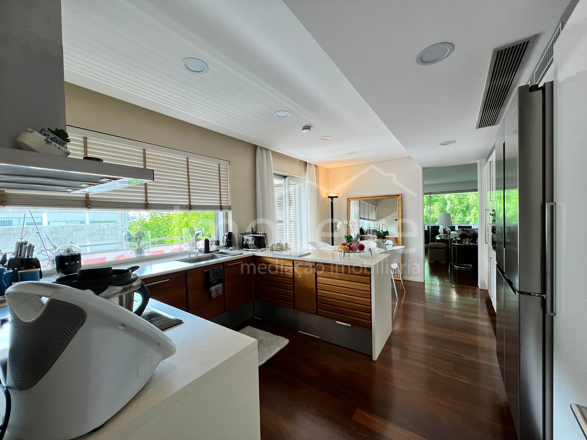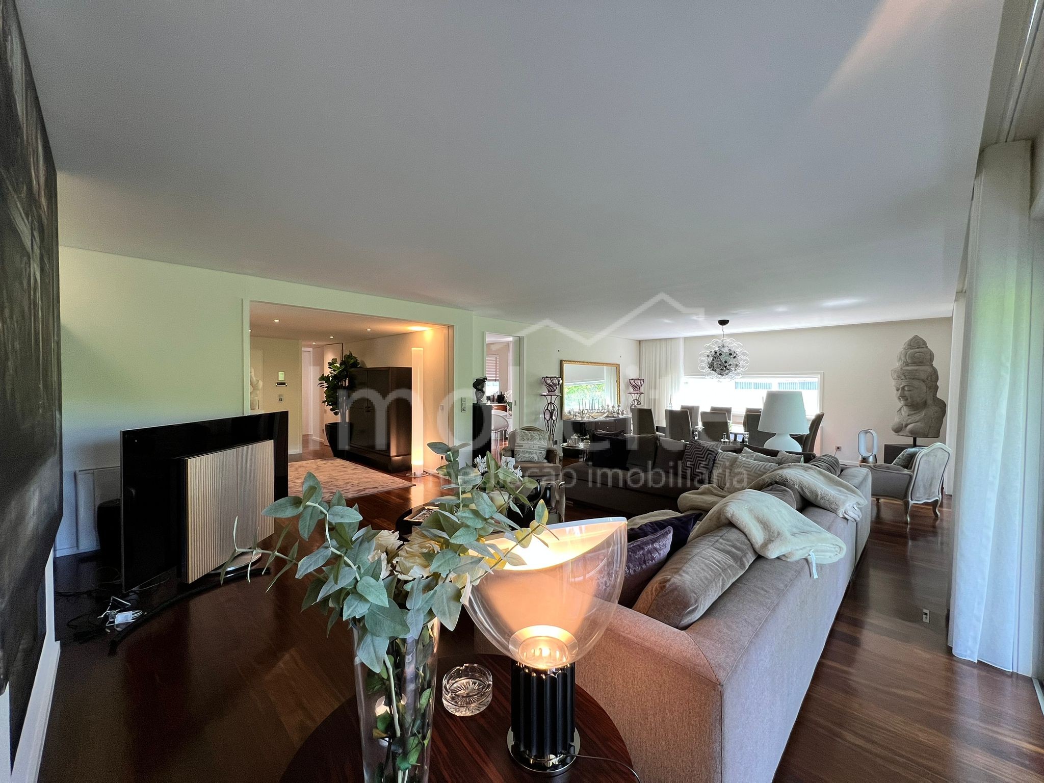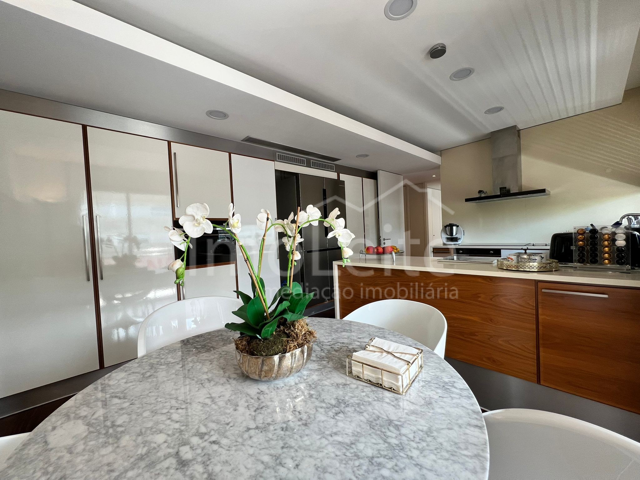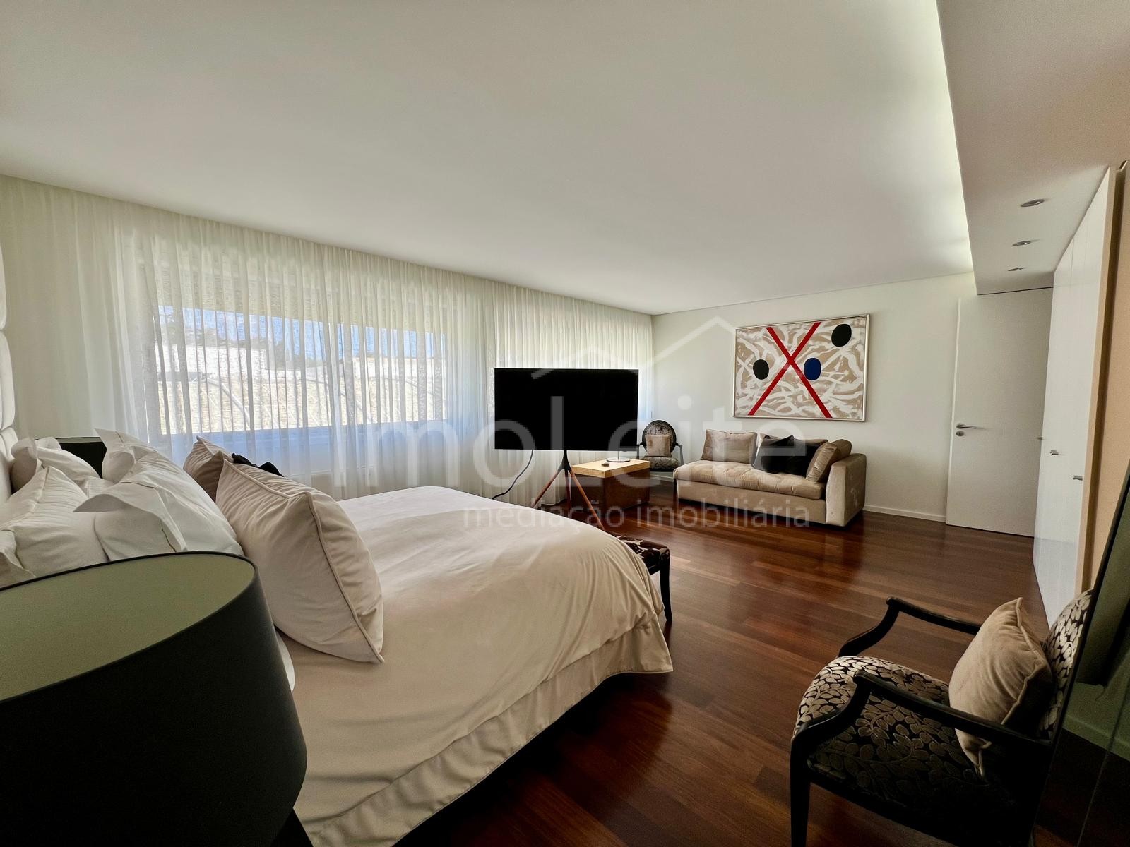 A distribuição funcional dos espaços interiores proporciona uma vivência prática e harmoniosa: uma ampla sala de estar, cozinha moderna e totalmente equipada, cinco quartos — incluindo uma suíte principal com closet — e várias casas de banho com materiais nobres.