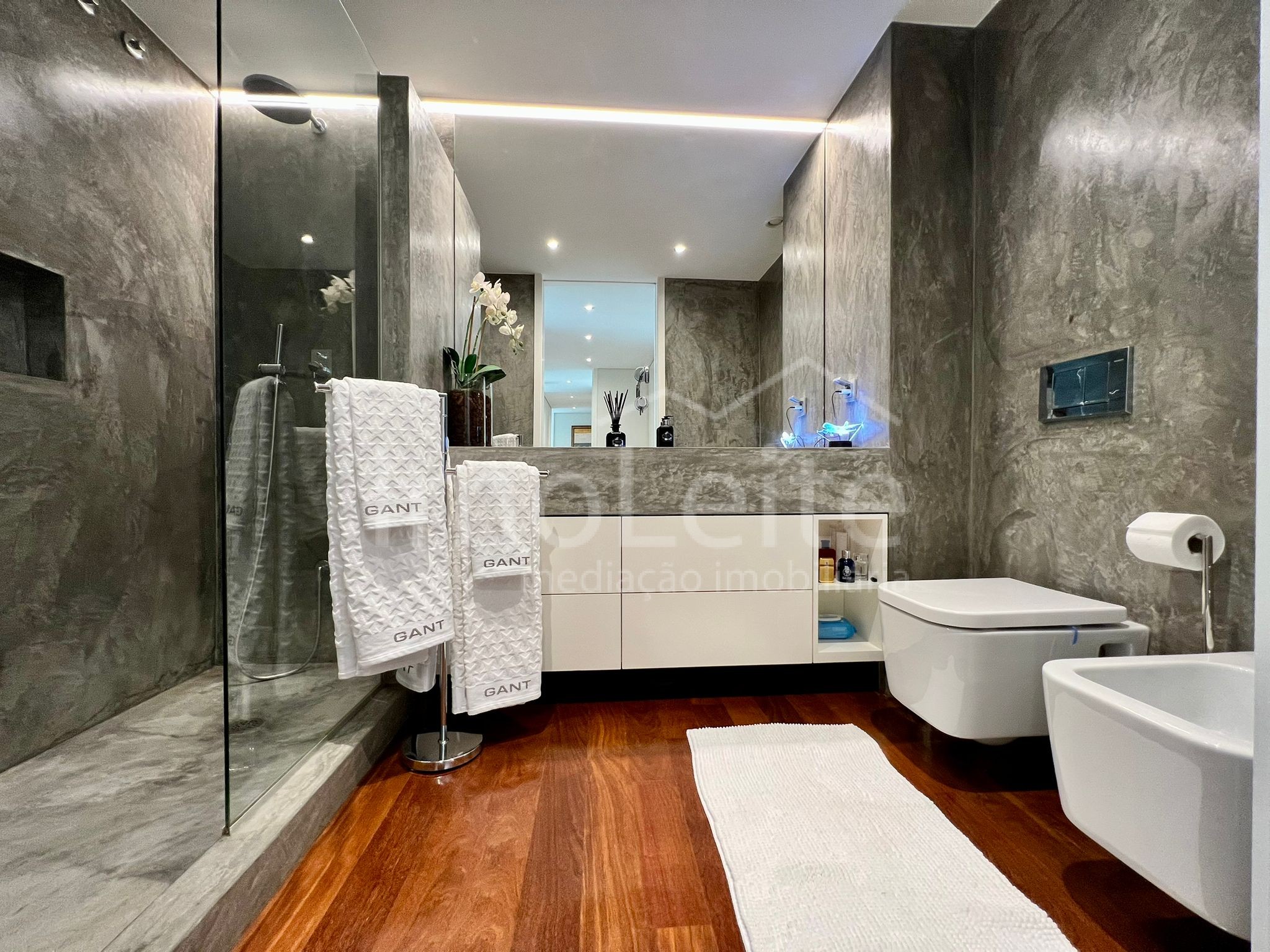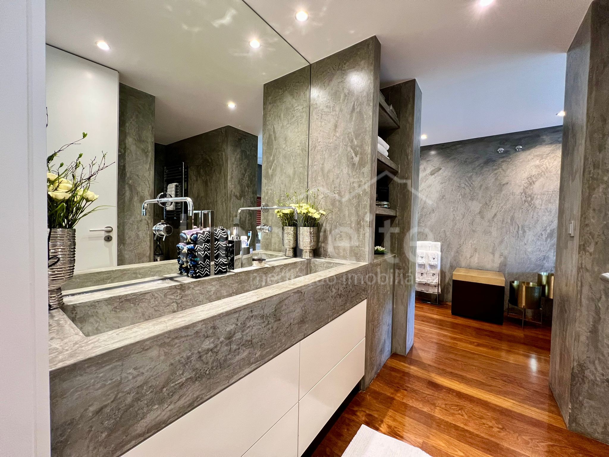 Com generosas áreas interiores, este apartamento combina sofisticação e conforto. Os acabamentos em mármore e pedras naturais conferem um toque de requinte intemporal, presente tanto nas zonas sociais como nos espaços mais privados. A arquitetura privilegia a luminosidade, com amplas janelas que deixam entrar a luz natural durante todo o dia, criando ambientes acolhedores e elegantes.