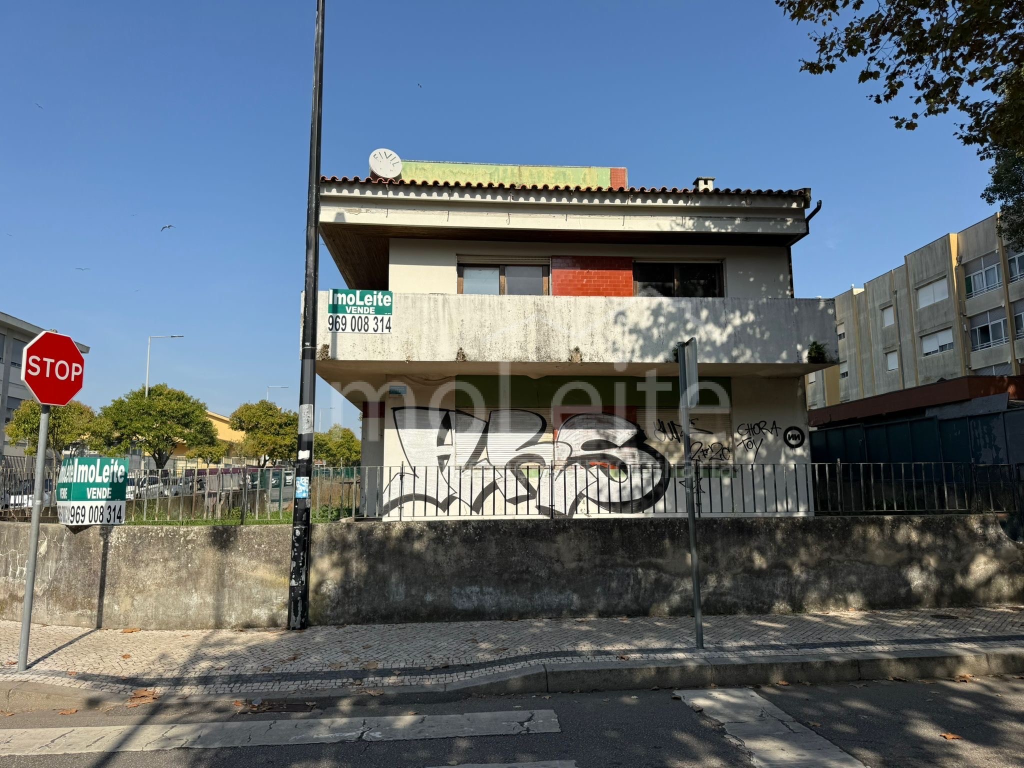 Moradia com rés do chão (garagem para 2 carros), 1º andar e recuado.